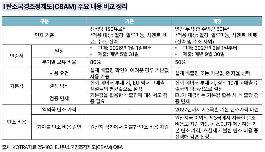 1. CBAM 적용 면제 기준 변경